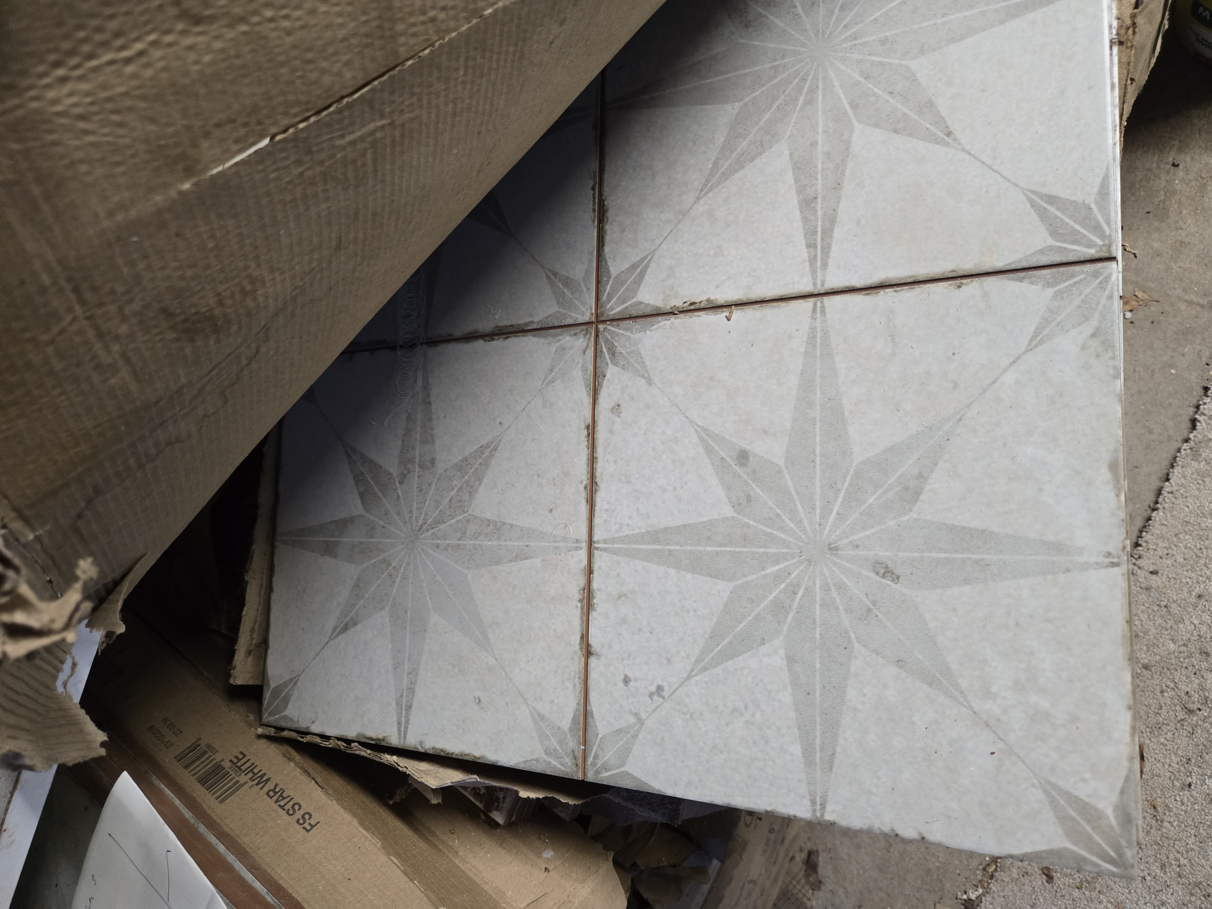 20 boxes of brand new, unused Perindo FS Star floor tiles in the white colour way.