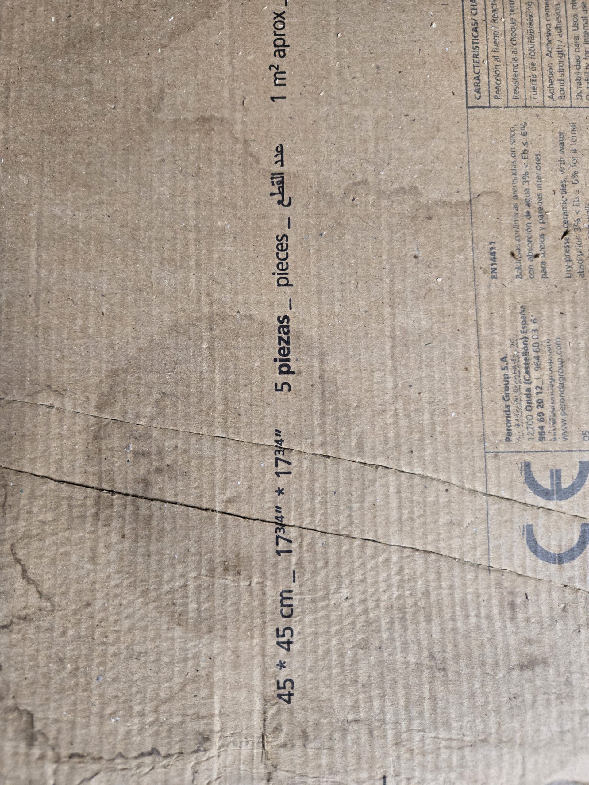 Each box contains 5 tiles of 45x45cm