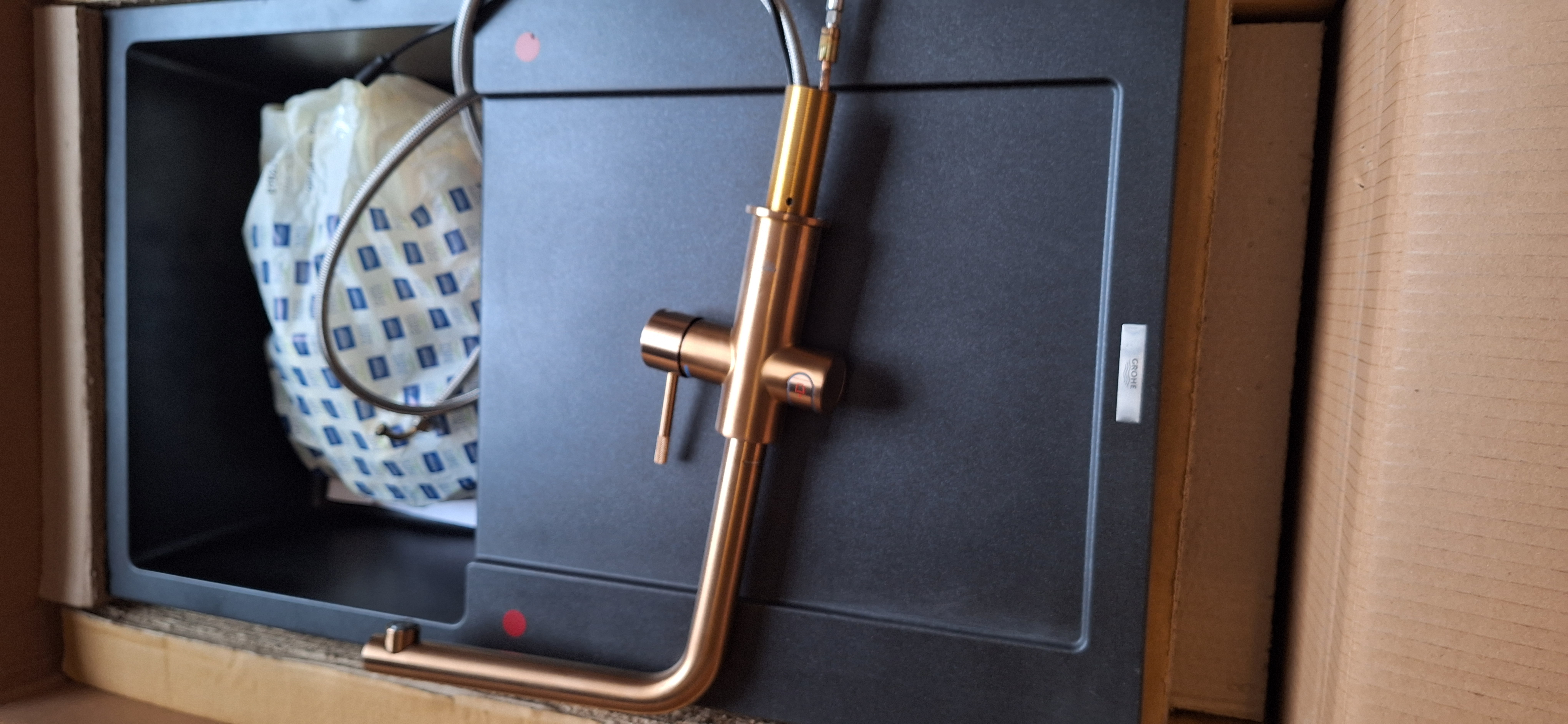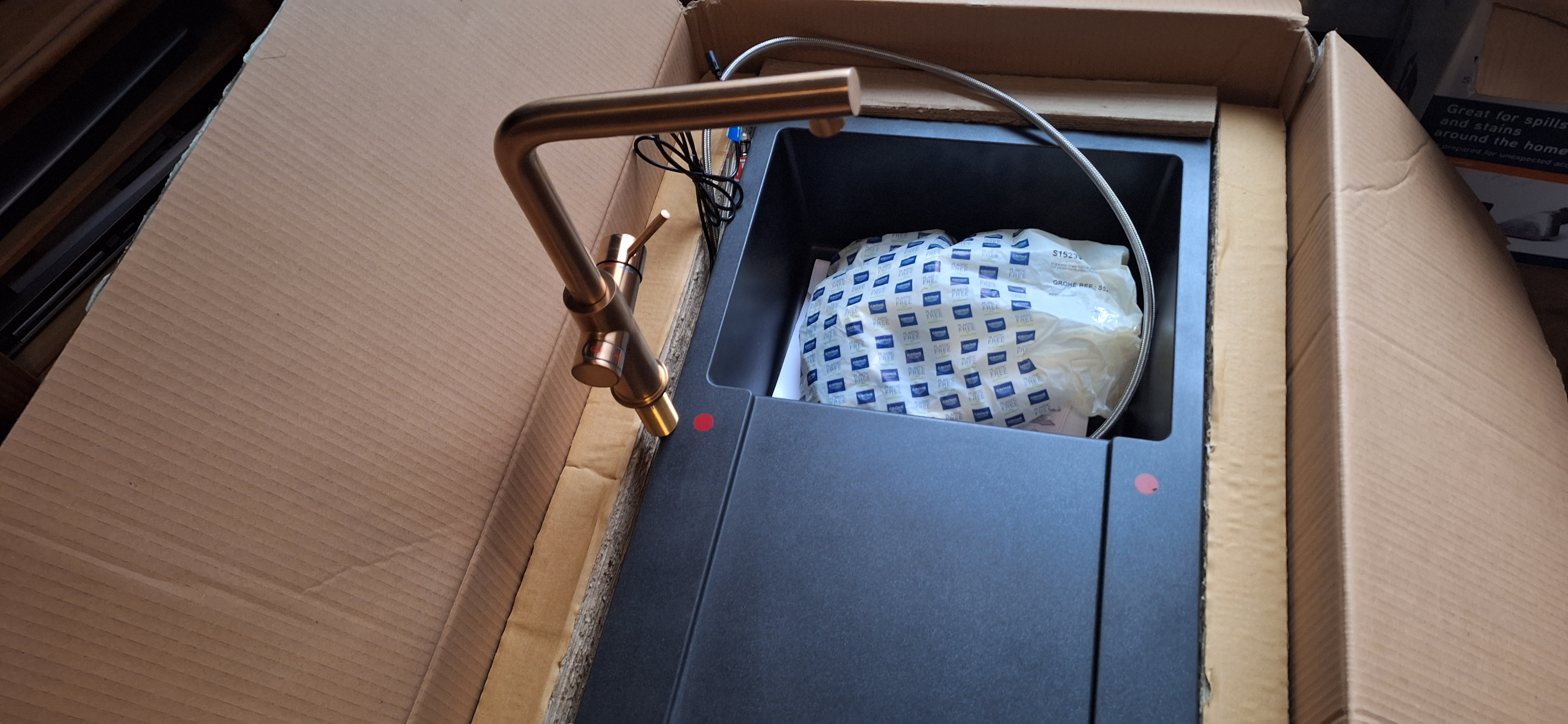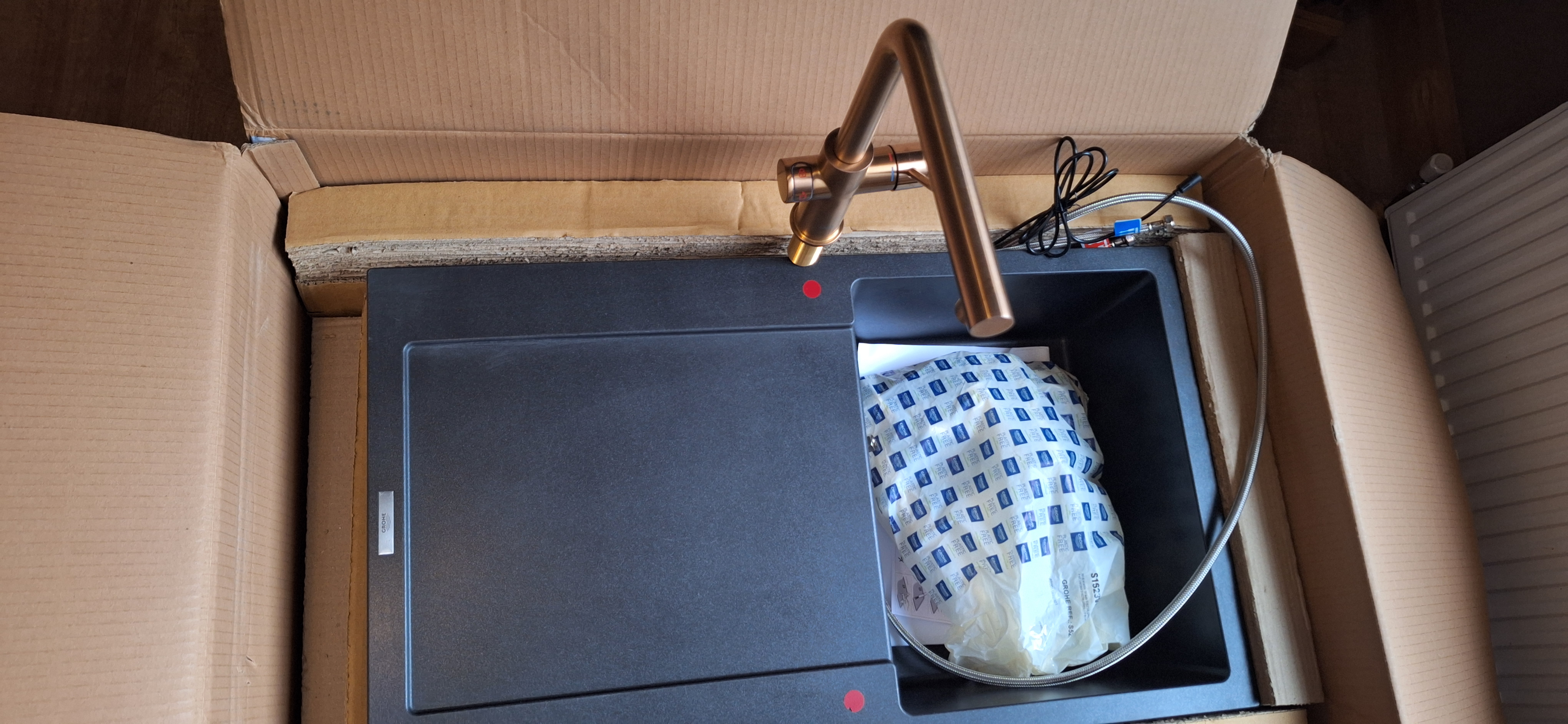 Hello, I have for sale a kitchen tap with a charcoal filter and a kettle. GROHE RED DUO M size and BOILER 30341DL1. And a kitchen sink GROHE K500 QUARTZ COMPOSITE SINK 31 644 APO. Everything is new, never been installed, and is in its original boxes. If anyone is interested, I can deliver in Derby or Barton on Trent. For more information, please send me a message. The price is £1,800.