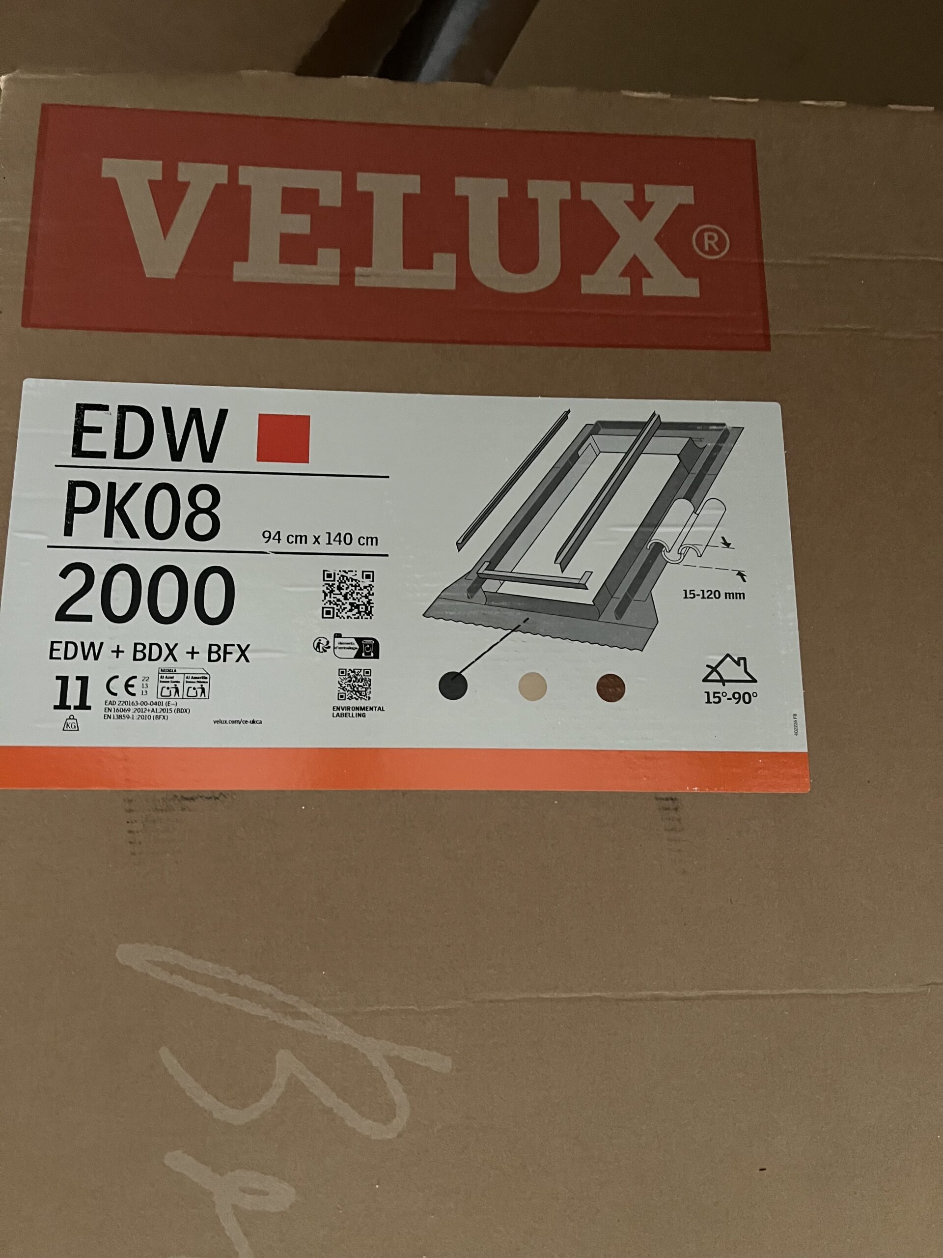 Velux EDW 2000 PK08 Pro+ Roof Window Flashing for profiled tiles up to 120mm thick. 940mm x 1400mm including BDX and BFX. 3 kits available for £60 each.